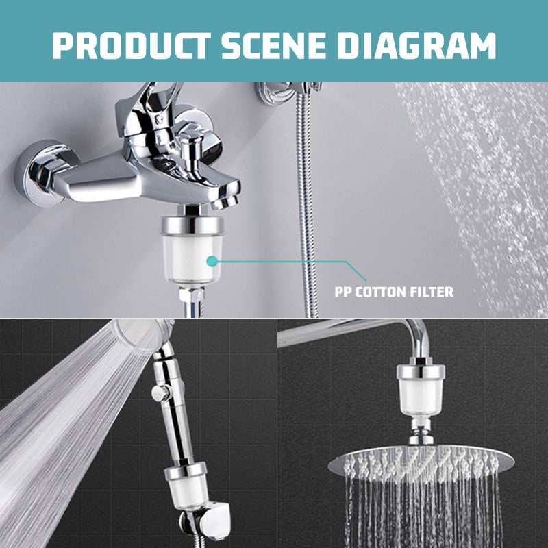 🌊 ממשק משותף: תאימות חלקה. מסנן המקלחת שלנו כולל ממשק אוניברסלי המתאים בקלות לרוב ראשי המקלחת, מה שהופך את הניקוי לקל.