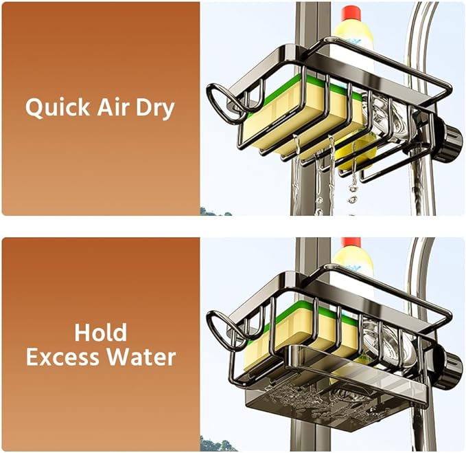 מחזיק ספוג הברז יכול לשמש לא רק עבור כיור המטבח אלא גם עבור חדר האמבטיה כדי לאחסן את השמפו, הסבון ופריטים אחרים, להיפטר מהעומס ולהפוך את הכיור והמשטחים למאורגנים יותר. מחזיק ברז זה מתאים מאוד למטבח ולחדר האמבטיה שלך.